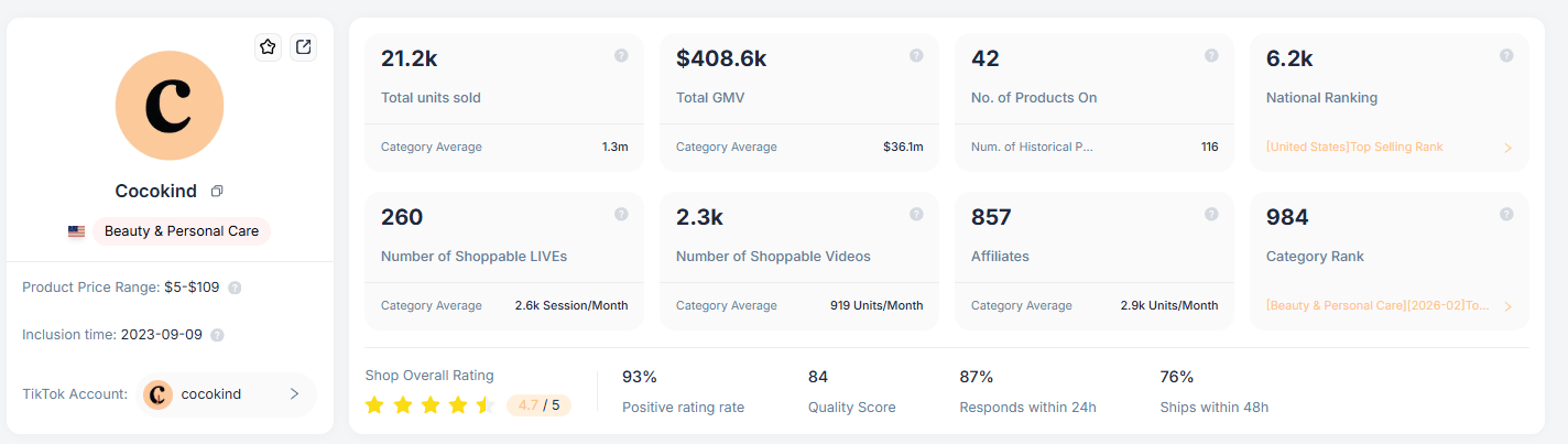 On TikTok Shop, where most brands rely on affiliates for more than 80% of revenue, Cocokind’s strategy is historic: the brand itself drives demand first, building authority and trust before affiliates amplify it.