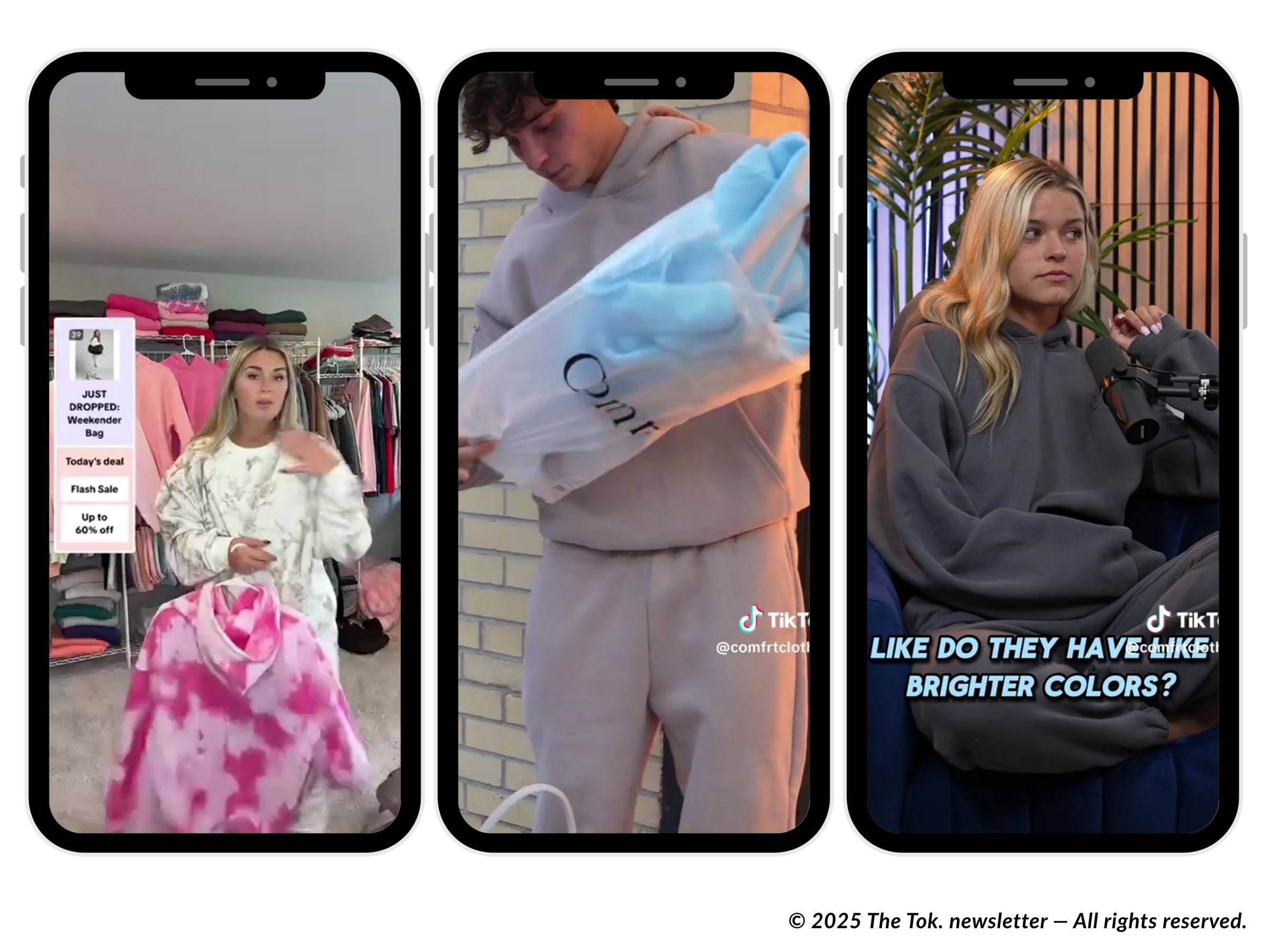 Their proven creator formula and affiliate-driven model make them a natural fit for TikTok Shop, where authenticity converts in real time. Beyond hoodies, the opportunity lies in expanding their product line while keeping the same playbook of influencer trust, and content velocity. If they sustain this momentum, Comfrt won’t just stay on top, they’ll set the standard for apparel in social commerce.